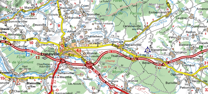 à une dizaine de kilomètres de Lunéville, à l'est de Nancy.